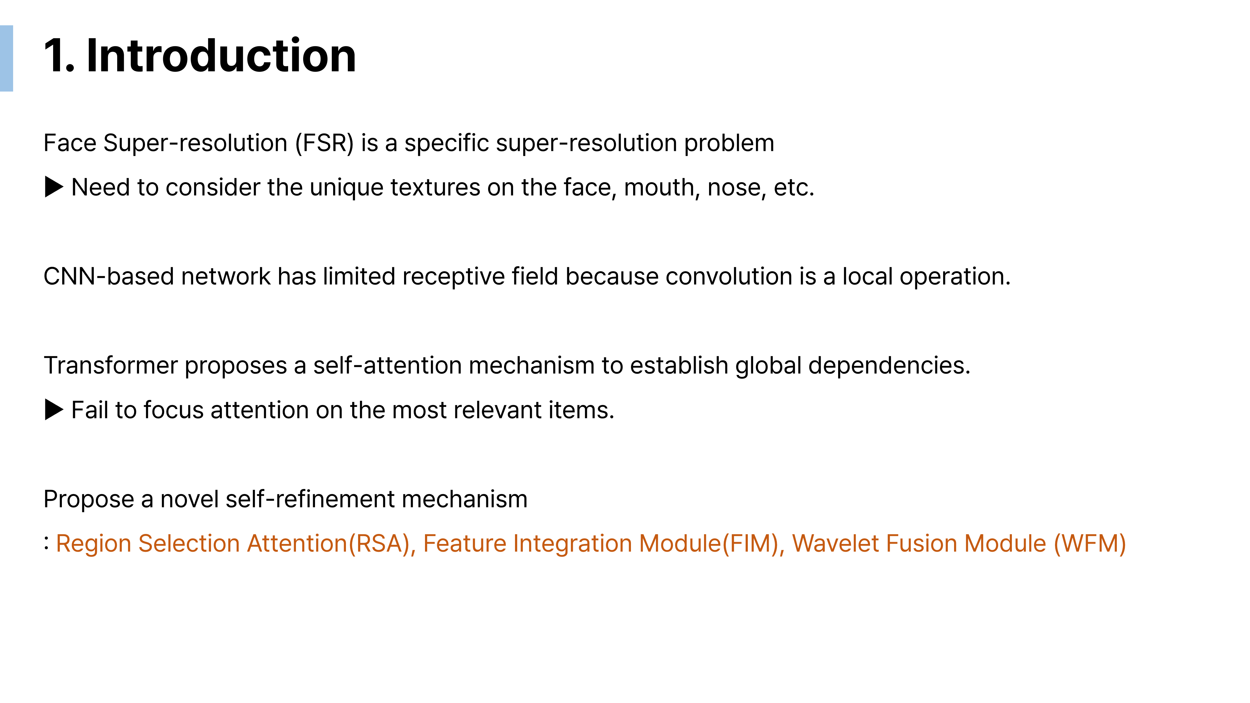 AI/논문 리뷰 [논문리뷰] Learning Attention from Attention: Efficient Self-Refinement Transformer for Face Super-Resolution by 미뇽도리 2023. 12. 26. 논문 링크 : https://www.ijcai.org/proceedings/2023/0115.pdf 선정 이유 : Attention 기법을 사용하는 Face Super-Resolution [발표 PPT] 공유하기 게시글 관리 민도리의 공부 저작자표시 비영리 변경금지 (새창열림) 'AI > 논문 리뷰' 카테고리의 다른 글 [논문리뷰] CodeFormer : Towards Robust Blind Face Restoration with Codebook Lookup Transformer (0) 2025.01.20 [논문리뷰] SPARNet : Learning Spatial Attention for Face Super-Resolution (0) 2024.05.27 [논문 공부] RPF: Reference-Based Progressive FaceSuper-Resolution Without LosingDetails and Identity (2) 2023.11.22 [논문리뷰] U-Net: Convolutional Networks for Biomedical Image Segmentation (0) 2023.11.12 [논문리뷰] Vit : An Image is Worth 16x16 Words Transformers for Image Recognition at Scale (2) 2023.10.09 관련글 [논문리뷰] CodeFormer : Towards Robust Blind Face Restoration with Codebook Lookup Transformer [논문리뷰] SPARNet : Learning Spatial Attention for Face Super-Resolution [논문 공부] RPF: Reference-Based Progressive FaceSuper-Resolution Without LosingDetails and Identity [논문리뷰] U-Net: Convolutional Networks for Biomedical Image Segmentation